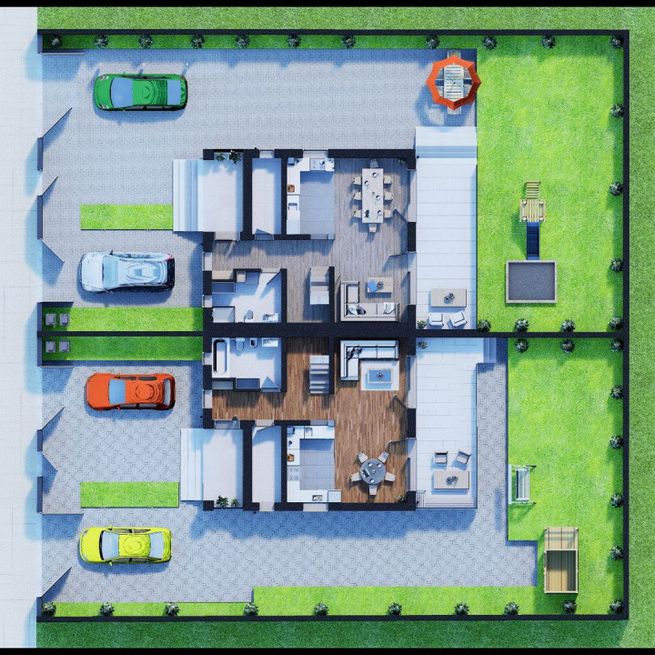 ℹ Face parte dintr-un ansamblu mic de 4 duplexuri, dintre care primele 2 sunt deja finalizate – o comunitate restrânsă, liniștită și prietenoasă.
