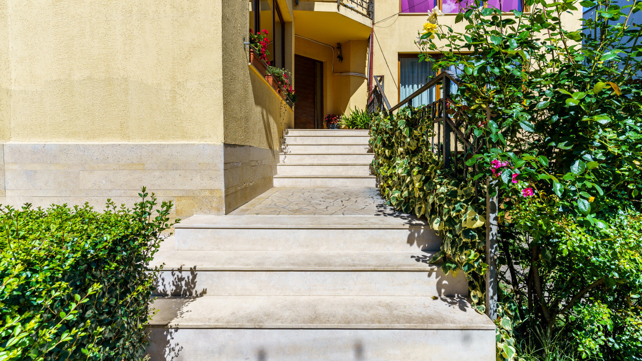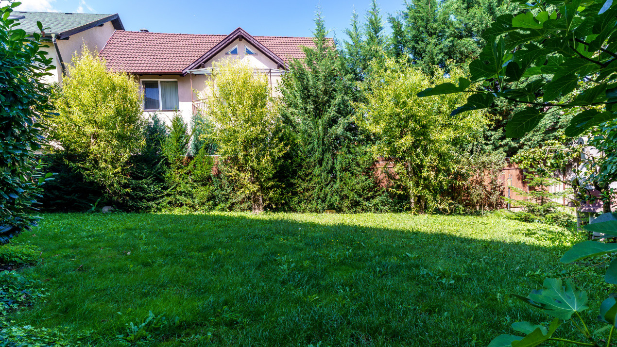 Pe acoperișul casei sunt montate panouri solare, curtea este amenajată integral cu gazon si plante decorative, portile sunt automate, iar căile de acces exterioare și trotuarele sunt pavate cu piatră.